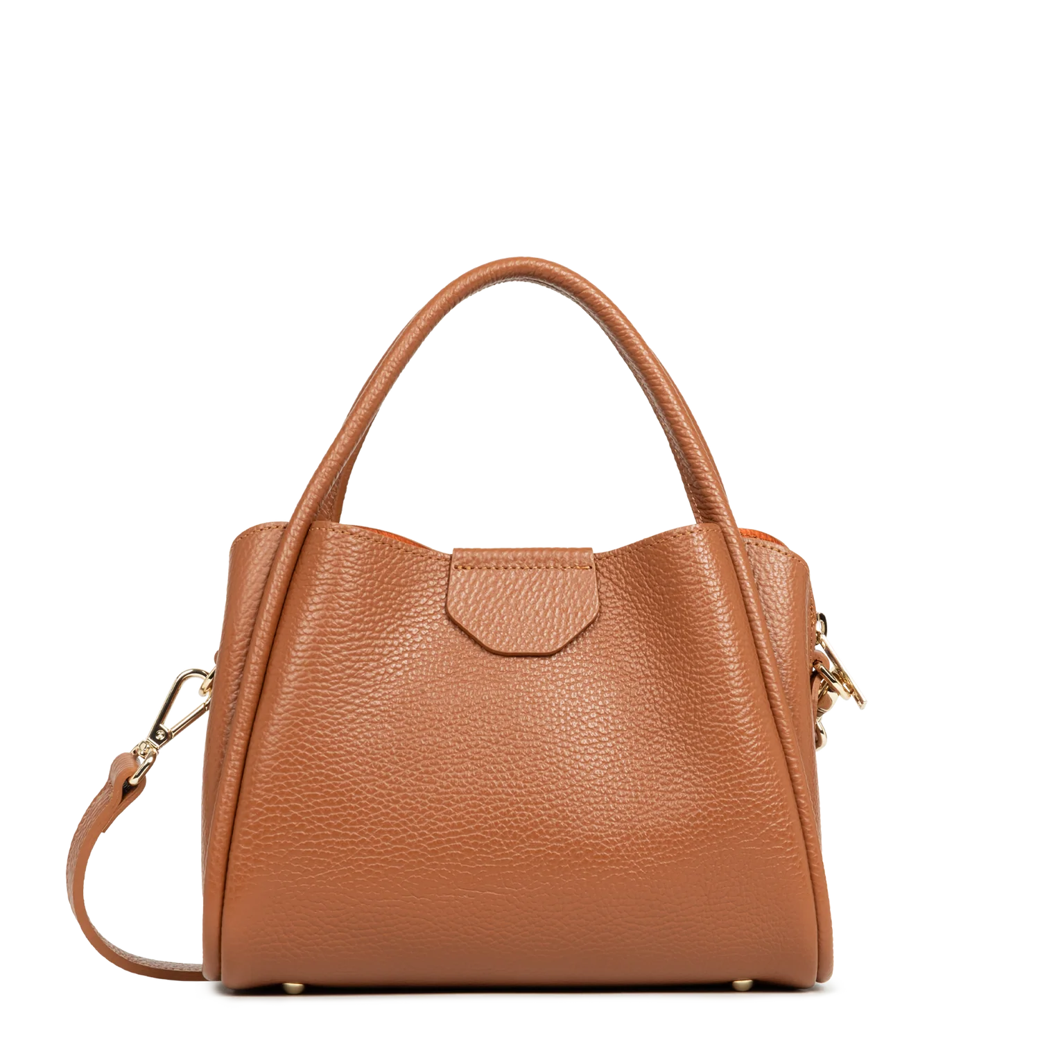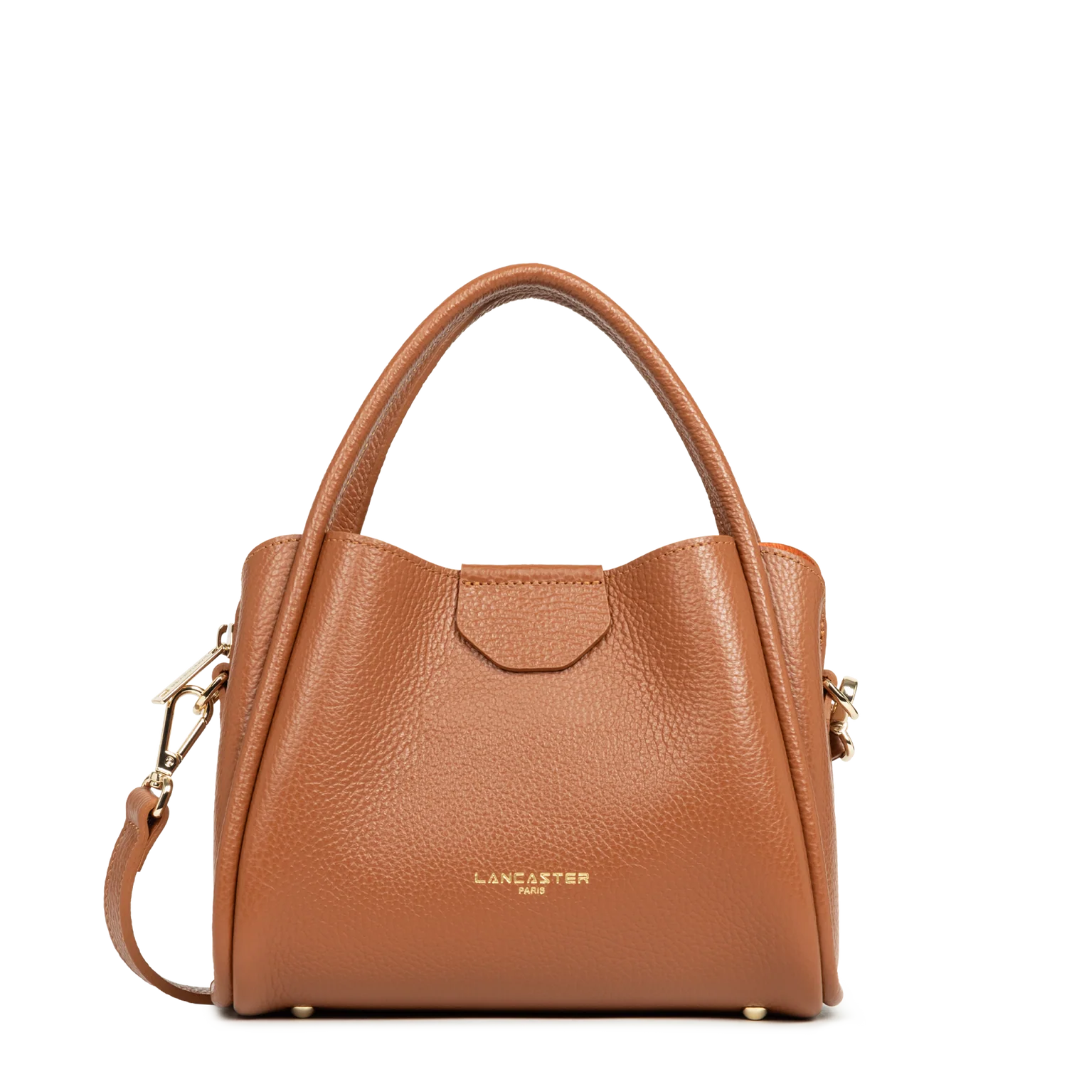 Sac porté main Lancaster en cuir de vachette grainé ligne Ida Double couleur camel