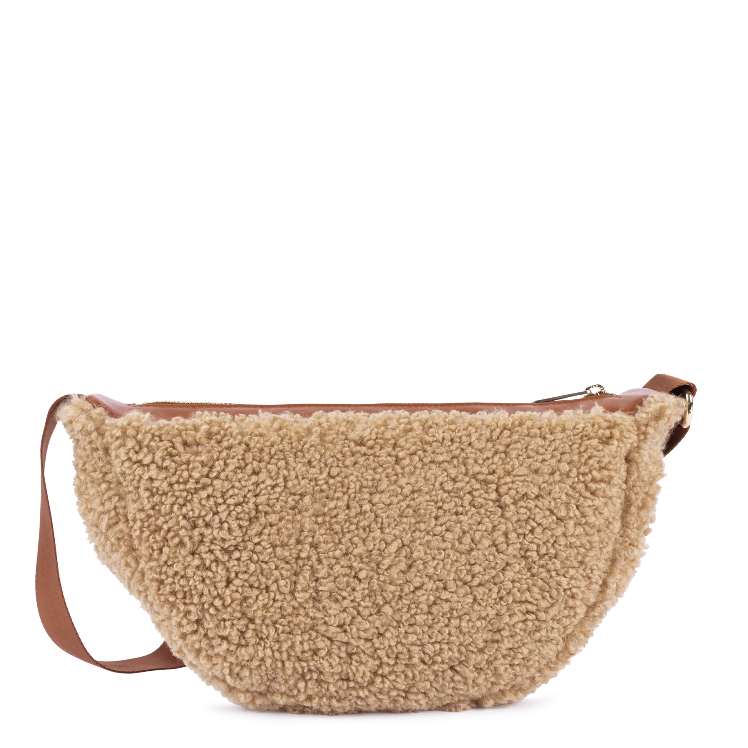 Confectionnée en toile enduite vernie brillante et rehaussée de détails en matière effet mouton, elle mêle praticité, légèreté et originalité.