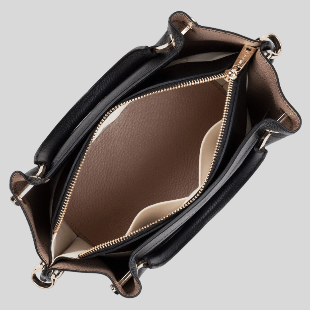 Sac à main Lancaster en cuir de vachette lisse ligne Foulonné Double couleur noir