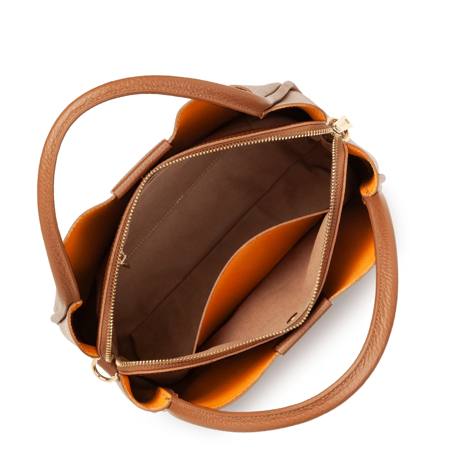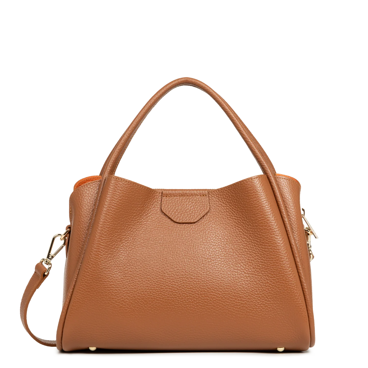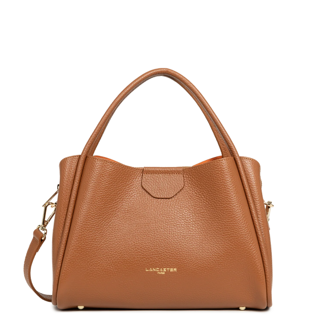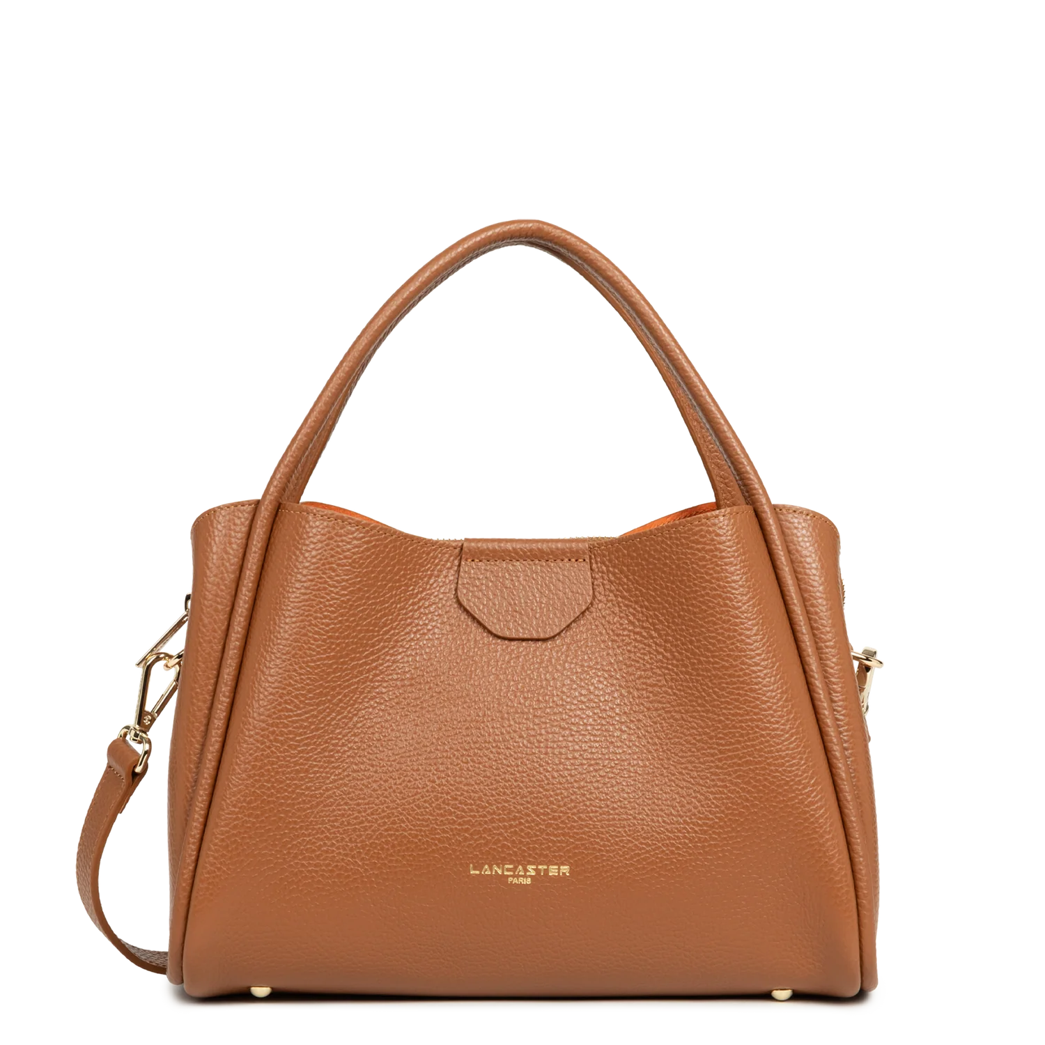 Sac porté main Lancaster en cuir de vachette grainé ligne Ida Double couleur camel