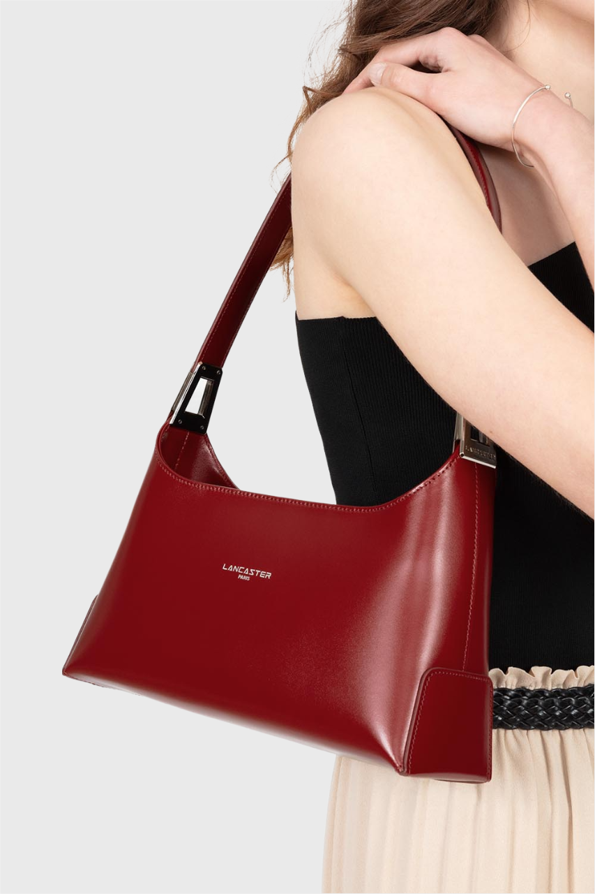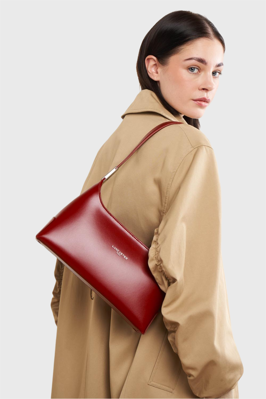 Sac rectangulaire Lancaster en cuir de vachette lisse ligne Suave Ace carmin