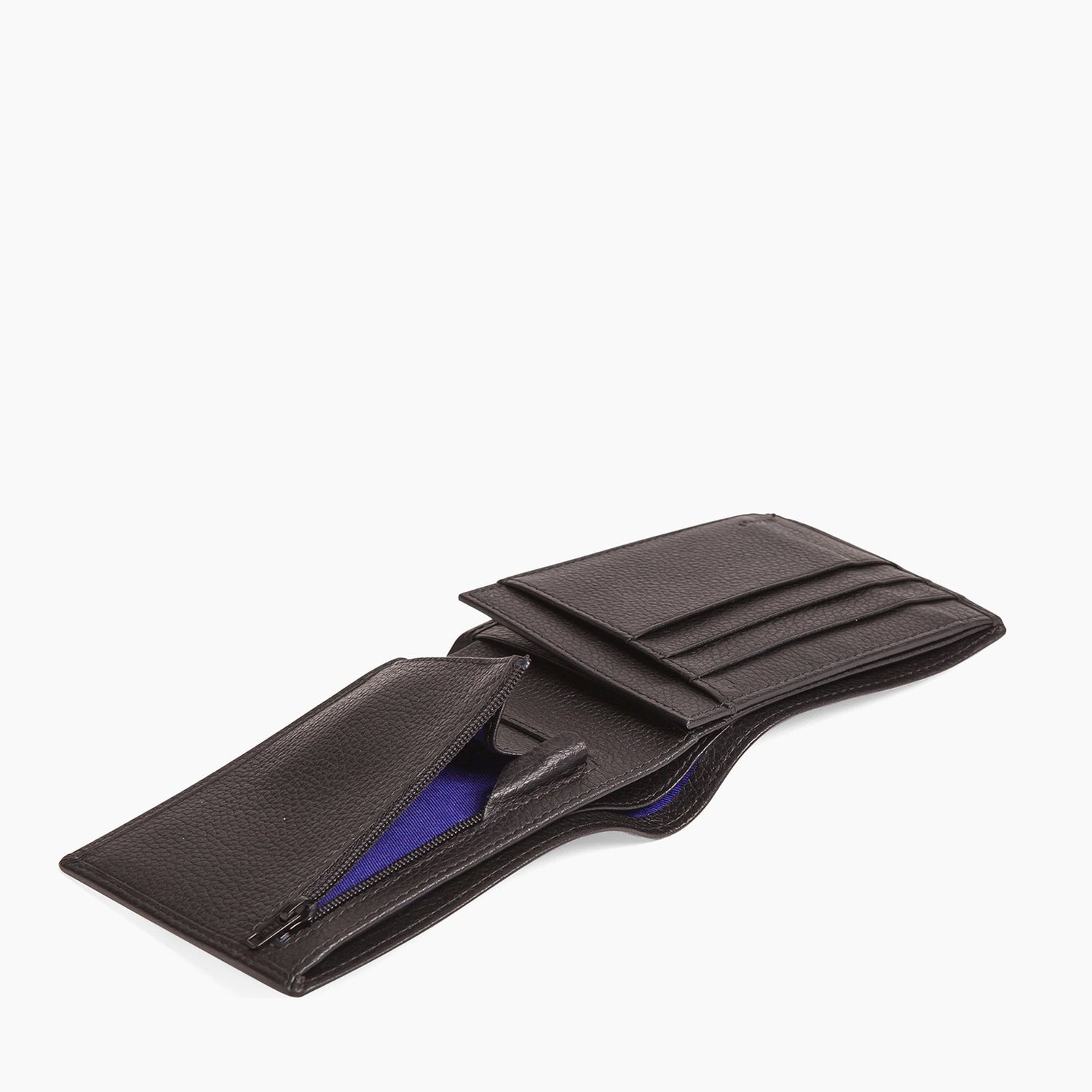 Ce portefeuille en cuir grainé est muni de 3 poches plates, 1 poche transparente pour le permis de conduire, 1 poche monnaie zippée, 2 poches billets et 6 compartiments cartes.